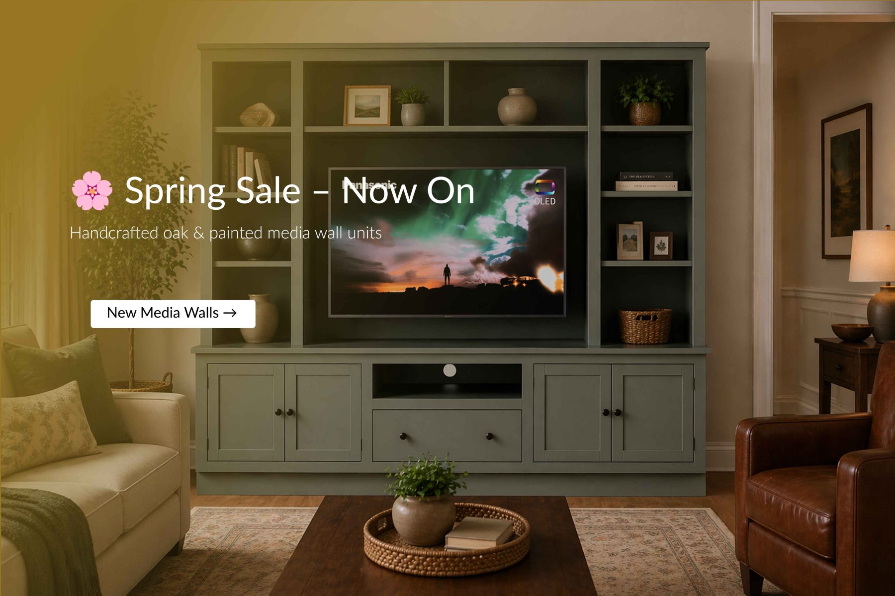 Create furniture that fits your space perfectly. For over 35 years, we’ve been handcrafting custom furniture in our Warminster workshop—from fitted wardrobes and kitchen units to extended handmade oak dining tables and media centres. Our oak dining furniture collection uses sustainably sourced solid oak, with bespoke sizing available for every table, sideboard, and chair.