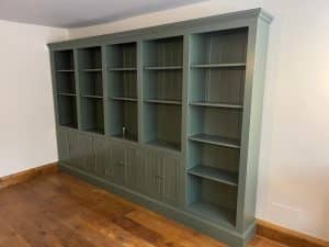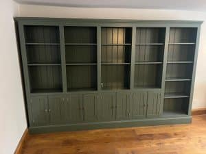 Built and finished by our team here at Con-Tempo Furniture in Warminster, this made-to-measure wall unit brings together traditional craftsmanship, modern practicality, and a colour that has fast become a client favourite: Farrow & Ball ‘Green Smoke’.