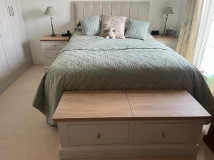 To complement the wardrobe, we designed and built a full suite of matching bedroom furniture, all finished to sit perfectly together.