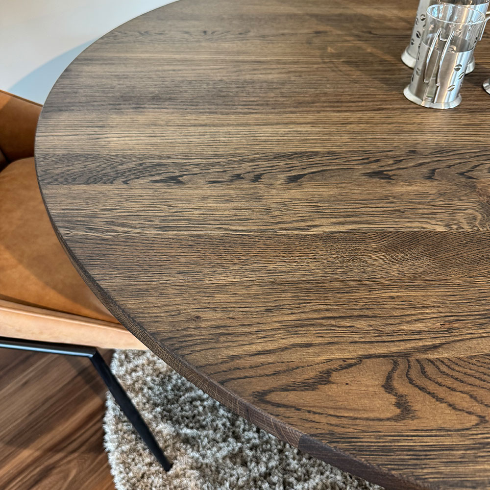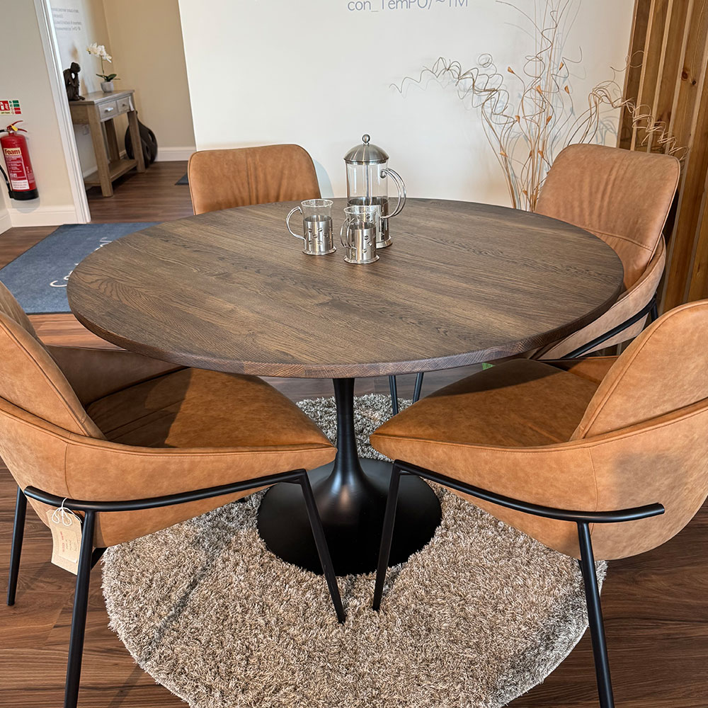 - Image Shown Solid Oak 1.2m Diameter Top Finished in Charcoal Heat Resistant Oil