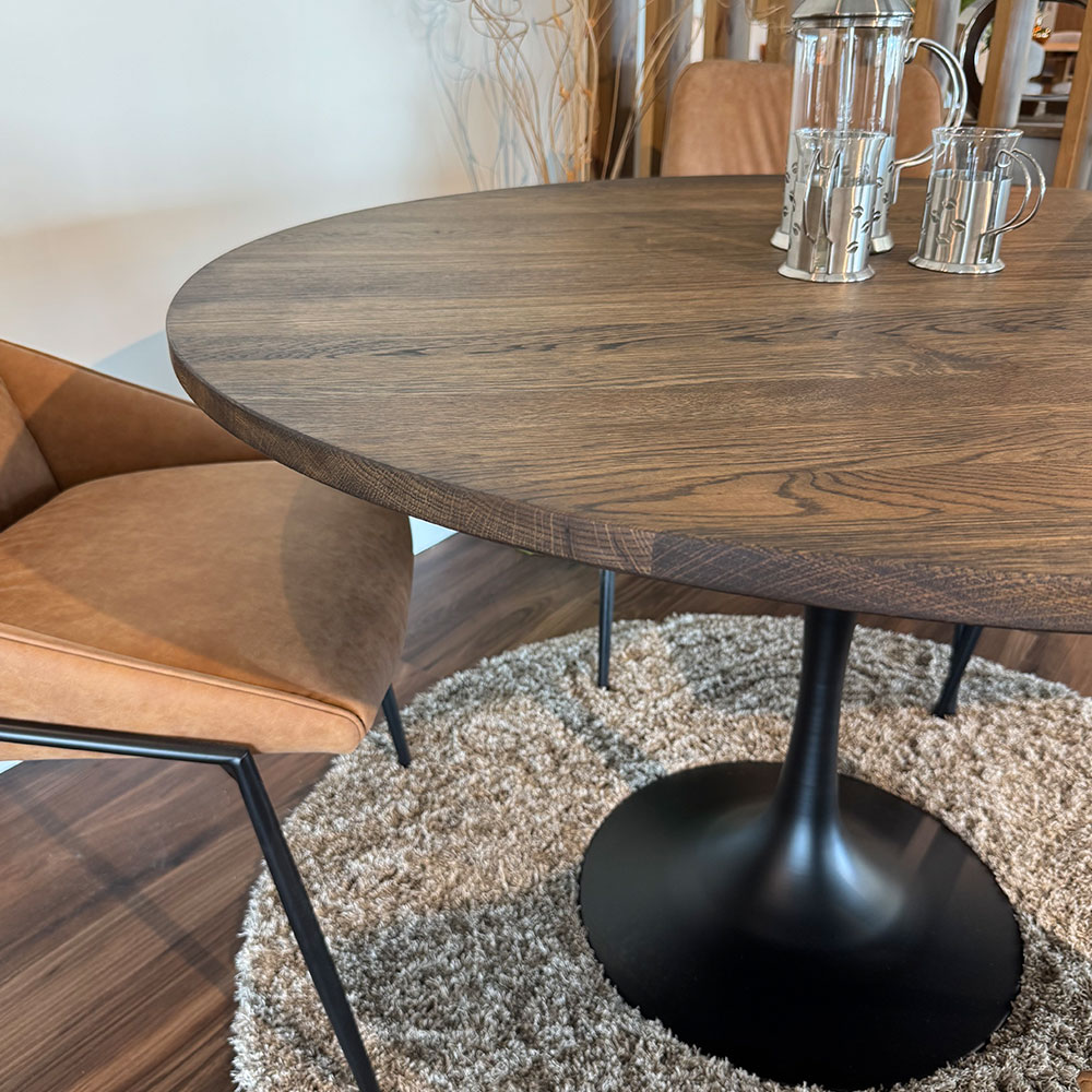 - Solid Oak Top & Tulip Satin Black Metal Base