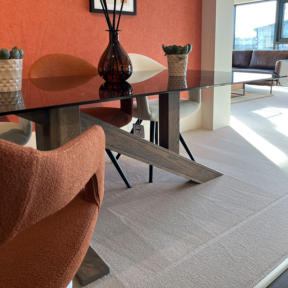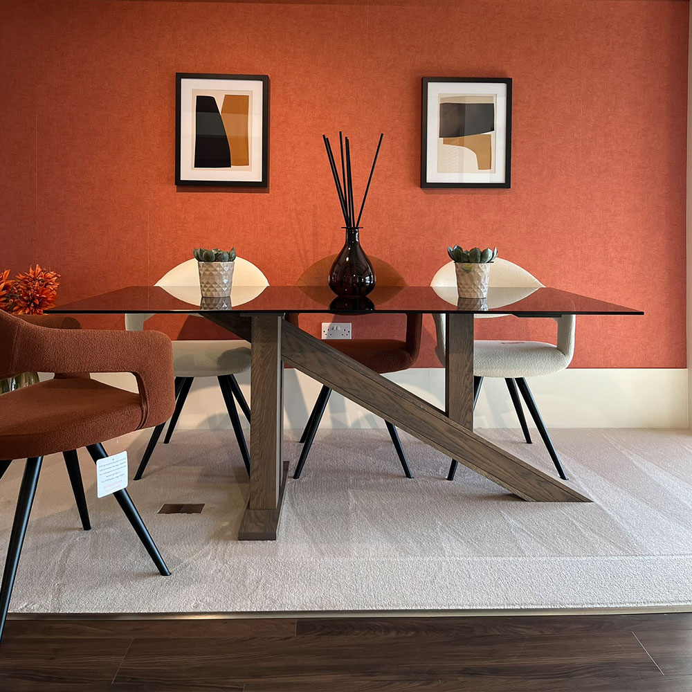 The Quercus Libra Table has a unique and captivating design that truly makes it a statement piece for your home, while it comfortable seats six making it eternally stylish yet practical. The table has unique angled oak leg configuration which is available in any of our six oak finishes which all truly complement the contemporary smoked glass top. All Our Quercus Furniture is made here in our factory in Wiltshire, each item is made to order just for you